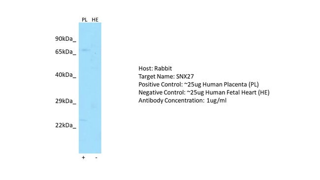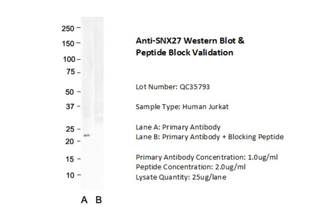 | Synthetic peptide directed towards the C-terminal region of Human SNX27 (aa 366-415). | |