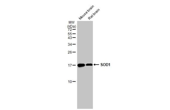 SOD1/Cu-Zn SOD Monoclonal antibody specifically detects SOD1/Cu-Zn SOD in Human, Mouse, Rat, Canine, Feline samples. It is validated for Western Blot, Immunohistochemistry, Immunocytochemistry/ Immunofluorescence, Immunohistochemistry (Paraffin)Specifications