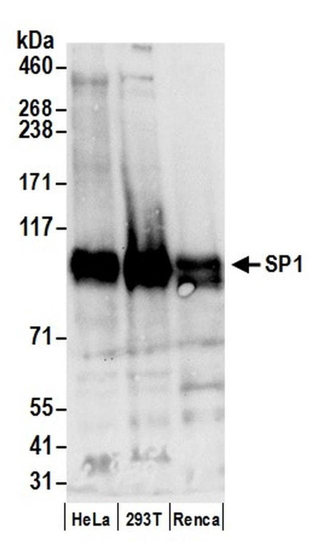 Sp1 Rabbit anti-Human, Mouse, Polyclonal, Bethyl Laboratories