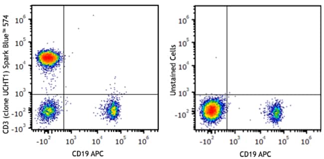 Spark Blue™ 574 anti-human CD3 [UCHT1]; Isotype: Mouse IgG1, κ; Reactivity: Human; Apps: FC; Size: 100 tests