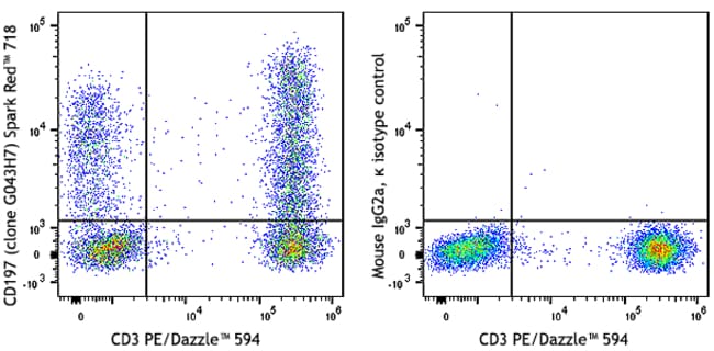 Spark Red™ 718 anti-human CD197 (CCR7) [G043H7]; Isotype: Mouse IgG2a, κ; Reactivity: Human; Apps: FC; Size: 100 tests