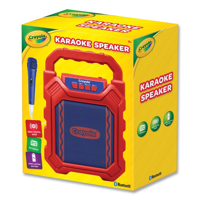 This karaoke speaker has deep bass for great sound as well as an FM radio Features colorful light FX and is Bluetooth compatible Connector/Port/Interface- Bluetooth Output- 5 W Depth- 4 Height- 9 45