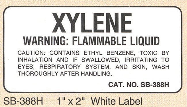 Electron Microscopy Sciences Specialty Warning Label Xylene, Model SB-388h, 1" x 2"