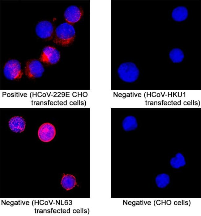 Spike RBD Monoclonal antibody specifically detects Spike RBD in HCoV-229E samples. It is validated for Western Blot, ImmunocytochemistrySpecifications