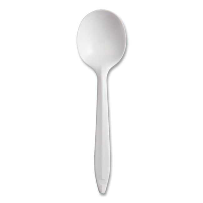 This is the ideal cutlery line for every day and anywhere These utensils are lightweight in hand but hold up hefty meals A stress-free solution for grab-and-go counters events and food trucks Dig into delicious pasta BBQ or whatever you desire with confidence These heat-resistant forks can go the distance Offer your customers the ease and convenience to enjoy meals wherever they want by providing them with cutlery they can count on Utensils Type- Soup Spoon Material Type- Plastic Material(s)- PP - Polypropylene Color(s)- White