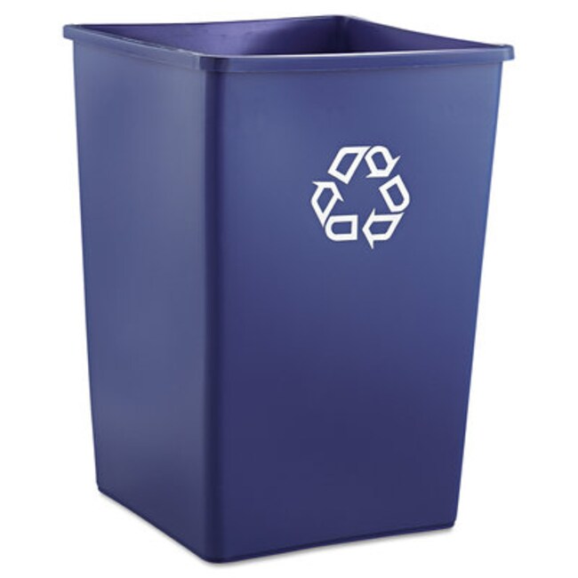 Rubbermaid Commercial Square Recycle Bins are perfect for use in areas of high paper generation, such as near copiers, printers, and in mailrooms. This recycle bin contains Post-Consumer Recycled Resin (PCR), exceeding EPA guidelines. The recycling bin station containers serve as a convenient central collection site for multiple work stations. Recommended for indoor and outdoor use. The large capacity is ideal for heavy traffic areas. These recycle bins are designed to withstand extreme weather and handling.