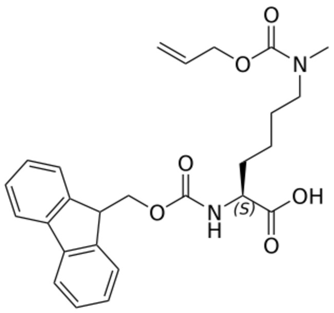 - IUPAC: N2-(((9H-fluoren-9-yl)methoxy)carbonyl)-N6-((allyloxy)carbonyl)-N6-methyl-L-lysine