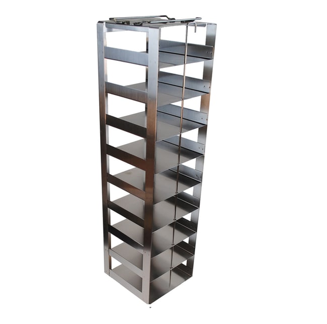 The Vertical Freezer Racks for 50 Cell Hinge Lid Storage Boxes are designed to provide a secure and efficient storage solution for laboratories looking to organize and preserve samples in 50 cell hinge lid storage boxes within vertical freezer environments These racks are tailored to enhance space utilization facilitate easy access and ensure the longevity and integrity of stored samples Product Features Optimized for 50 Cell Hinge Lid Boxes These freezer racks are specifically engineered to accommodate 100 cell hinge lid storage boxes ensuring a snug and secure fit This design minimizes movement and provides optimal protection for the samples stored within Enhanced Space Efficiency The vertical orientation of the racks maximizes the use of vertical space within freezers significantly increasing storage capacity without sacrificing accessibility This allows laboratories to store a greater number of samples in a limited space improving organization and efficiency Robust Constructi