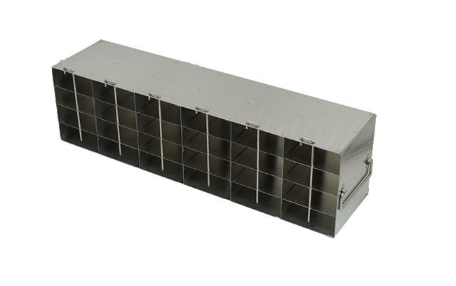 For 0.2 ml Tube 96-Well PCR Boxes Our Freezer Storage Racks are constructed of high-quality, corrosion resistant stainless steel. Durable stainless steel freezer racks facilitate organization and maximize valuable storage space.. Handles at both ends accommodate freezers with right or left handed doors. Upright Freezer Racks for 0.2ml Tube 96-well PCR Boxes. Our freezer racks have been configured to fit all major ultra low (-80°) freezers on the market; racks are designed for ultra low upright freezers. Features: Constructed of corrosion resistant stainless steel Locking rods are included Security lock devices are availble for each rack Sturdy handle design Dimensions (DxWxH): 22 1/2 x 6 1/8 x 5 1/2inch (571 x 156 x 140mm)Compartment Dimensions: 3 9/16 x 1 7/16 x 5 3/16 inch (91 x 37 x 130.5mm)
