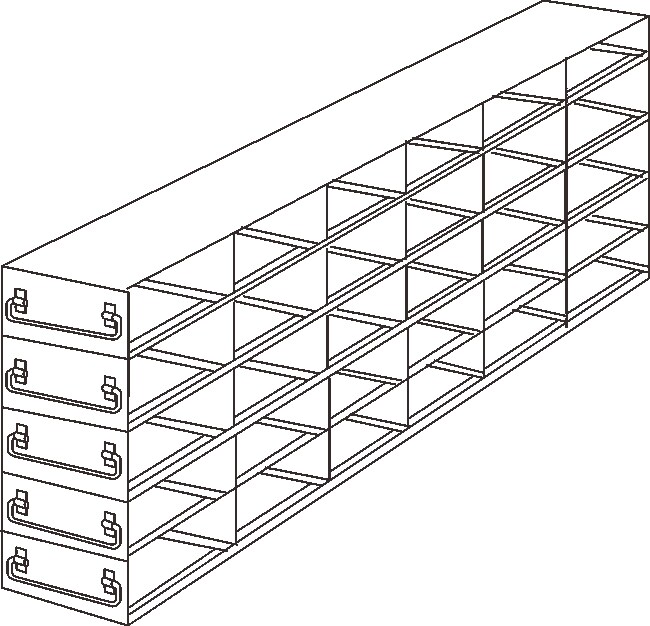 For Speciality Tube Racks (Matrix, Micronic, Fluidx, Abgene) H: 2 1/8″- 2 7/16″ (54.8-61.8mm) The UFDMX-652 upright freezer drawer racks are designed to safely store a total of (30) 96 Well MATRIX Boxes, FluidX Boxes or Micronic Racks in an upright laboratory freezer. These racks are made out of corrosion resistant stainless steel. Upright freezer drawer racks include handles and identification card holders. Boxes are not included with purchase. Dimensions L x H x W: 21 3/8 x 13 3/16 x 5 7/16 inch ( 542.5 x 335 x 138mm)Compartment Size l x h x W: 3 7/16 x 2 7/16 x 5 1/16 inch (88 x 62.4 x 129mm)