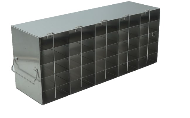 For 0.2 ml Tube 96-Well PCR Boxes Our Freezer Storage Racks are constructed of high-quality, corrosion resistant stainless steel. Durable stainless steel freezer racks facilitate organization and maximize valuable storage space.. Handles at both ends accommodate freezers with right or left handed doors. Upright Freezer Racks for 0.2ml Tube 96-well PCR Boxes. Our freezer racks have been configured to fit all major ultra low (-80°) freezers on the market; racks are designed for ultra low upright freezers. Features: Constructed of corrosion resistant stainless steel Locking rods are included Security lock devices are availble for each rack Sturdy handle design Dimensions (DxWxH): 18 13/16 x 7 5/8 x 5 1/2inch (385 x 194 x 140mm)Compartment Dimensions: 3 9/16 x 1 7/16 x 5 3/16 inch (91 x 37 x 130.5mm)