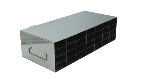 For 80-Place Tube Boxes Our Freezer Storage Racks are constructed of high-quality, corrosion resistant stainless steel. Durable stainless steel freezer racks facilitate organization and maximize valuable storage space. Handles at both ends accommodate freezers with right or left handed doors. Upright Freezer Racks for 80 Place Tube Boxes. Our freezer racks have been configured to fit all major ultra low (-80°) freezers on the market; racks are designed for ultra low upright freezers. Dimensions (DxWxH): 20 5/16 x 9 3/16 x 5 3/8 inches (516 x 234 x 136mm)Compartment Dimensions: 2 3/4 x 9 1/8 x 1 5/16 inches (70 x 231 x 33mm)