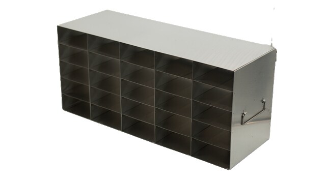 For 96-Well Flipper Reversible Boxes Our freezer racks feature pharmaceutical grade stainless steel, double welds for long life and smooth edges for your safety and comfort. Made of corrosion resistant stainless steel Dimensions (DxWxH): 24 13/16 x 8 3/4 x 11 inches (630 x 222 x 280mm)Compartment Dimensions: 4 3/4 x 8 5/8 x 2 3/16 inches (121 x 219 x 55mm)