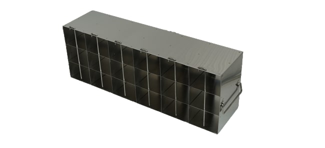 For 0.2 ml Tube 96-Well PCR Boxes Our Freezer Storage Racks are constructed of high-quality, corrosion resistant stainless steel. Durable stainless steel freezer racks facilitate organization and maximize valuable storage space.. Handles at both ends accommodate freezers with right or left handed doors. Upright Freezer Racks for 0.2ml Tube 96-well PCR Boxes. Our freezer racks have been configured to fit all major ultra low (-80°) freezers on the market; racks are designed for ultra low upright freezers. Features: Constructed of corrosion resistant stainless steel Locking rods are included Security lock devices are availble for each rack Sturdy handle design Dimensions (DxWxH): 18 13/16 x 10 9/16 x 5 1/2inch (385 x 269 x 140mm)Compartment Dimensions: 3 9/16 x 1 7/16 x 5 3/16 inch (91 x 37 x 130.5mm)