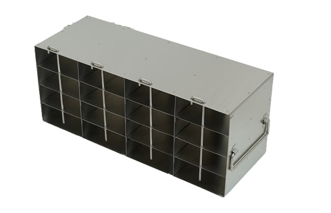 For 0.2 ml Tube 96-Well PCR Boxes Our Freezer Storage Racks are constructed of high-quality, corrosion resistant stainless steel. Durable stainless steel freezer racks facilitate organization and maximize valuable storage space.. Handles at both ends accommodate freezers with right or left handed doors. Upright Freezer Racks for 0.2ml Tube 96-well PCR Boxes. Our freezer racks have been configured to fit all major ultra low (-80°) freezers on the market; racks are designed for ultra low upright freezers. Features: Constructed of corrosion resistant stainless steel Locking rods are included Security lock devices are availble for each rack Sturdy handle design Dimensions (DxWxH): 15 3/16 x 6 1/8 x 5 1/2inch (385 x 156 x 140mm)Compartment Dimensions: 3 9/16 x 1 7/16 x 5 3/16 inch (91 x 37 x 130.5mm)