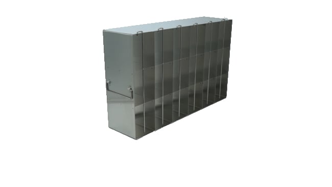 For Speciality Tube Racks (Micronic, Fluidx)- H: 4-4 1/4″ (101.5-107.82mm) Our freezer racks feature pharmaceutical grade stainless steel, double welds for long life and smooth edges for your safety and comfort. Made of corrosion resistant stainless steel Locking rods are included Dimensions (DxWxH): 21 3/4 x 5 7/16 x 13 3/8 inches (552 x 138 x 340mm)Compartment Dimensions: 3 7/16 x 5 1/8 x 4 3/8 inches (88 x 130 x 110.5mm)