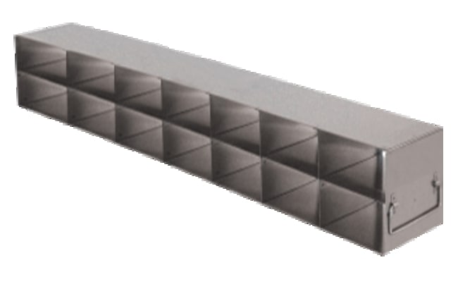 For Speciality Tube Racks (Micronic, Fluidx)- H: 4-4 1/4″ (101.5-107.82mm) Our freezer racks feature pharmaceutical grade stainless steel, double welds for long life and smooth edges for your safety and comfort. Made of corrosion resistant stainless steel Locking rods are included Dimensions (DxWxH): 25 1/4 x 5 7/16 x 9 inches (642 x 138 x 229mm)Compartment Dimensions: 3 7/16 x 5 1/8 x 4 3/8 inches (88 x 130 x 110.5mm)