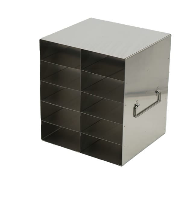 For 96-Well Flipper Reversible Boxes Our freezer racks feature pharmaceutical grade stainless steel, double welds for long life and smooth edges for your safety and comfort. Made of corrosion resistant stainless steel Dimensions (DxWxH): 10 1/4 x 8 3/4 x 11 inches (261 x 222 x 280mm)Compartment Dimensions: 4 3/4 x 8 5/8 x 2 3/16 inches (121 x 219 x 55mm)