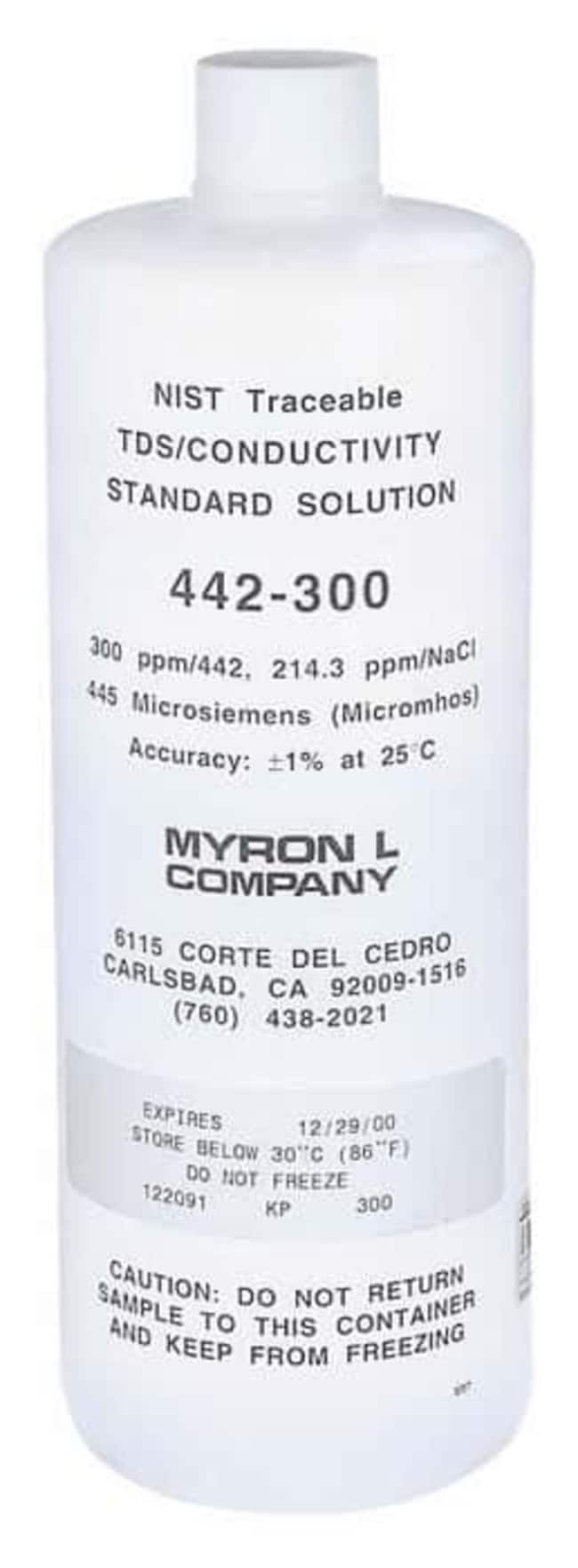 Standards have NaCl and 442™ conversions included for ease of use. Conductivity values are accurate to within ±1% and are referenced to 25°C. Include a NIST-traceable calibration report supplied by the manufacturer for an additional fee. One 32-oz bottle.