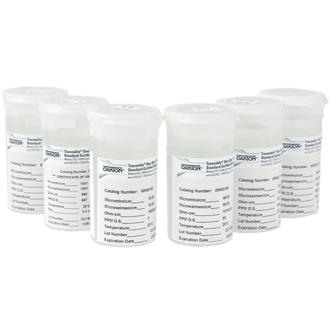 Cole-Parmer Oakton Traceable One-Shot™ Conductivity and TDS Standard, Assortment; 6 x 100 mL Vials