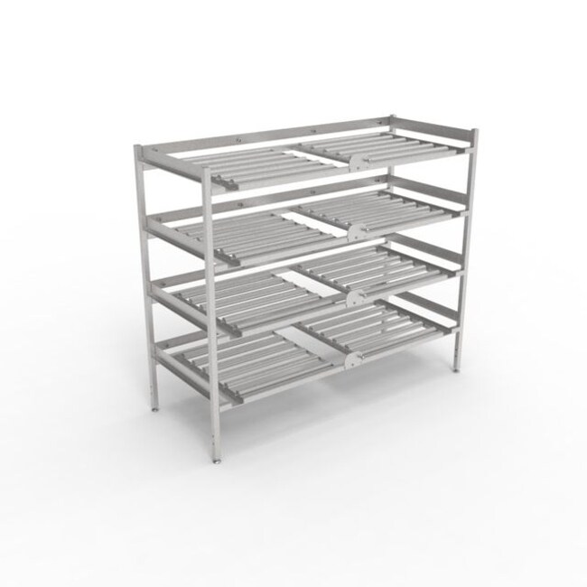 - (10) Rollers and (4) rubber tray stops per tier