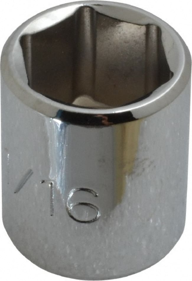 MSC Proto J5222H 11/16", 3/8" Drive, Standard Hand Socket 6 Points, 1-1/8" Overall Length, Chrome Finish