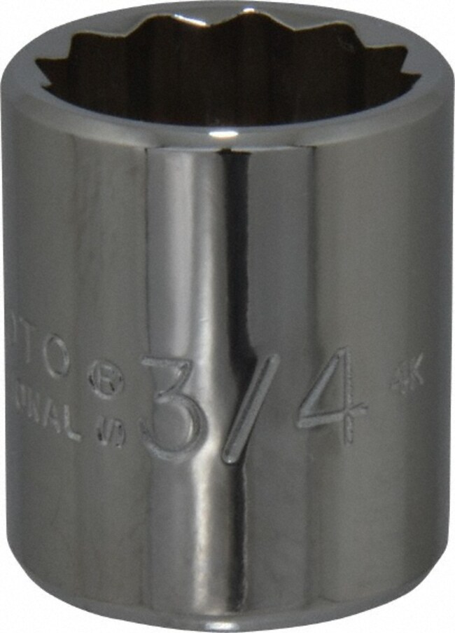 3/4", 3/8" Drive, Standard Hand Socket 12 Points, 1-3/16" OAL,ome Finish