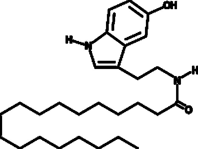 A hybrid molecule patterned after arachidonoyl serotonin; while saturated 11- or 12-fatty acids linked to serotonin potently inhibit capsaicin-induced TRPV1 channel activation (IC50 =0.76 μM) without blocking FAAH-mediated hydrolysis of arachidonoyl ethanolamine (IC50 > 50 μM), the effects of stearoyl serotonin are unknown
