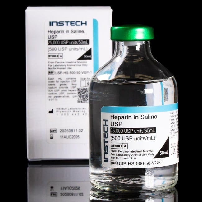 Instech Sterile Catheter Lock Solution, Heparin Sodium (500 USP units/mL) in Saline (0.9% NaCl), 50mL Vial, Green Cap with PinPort™