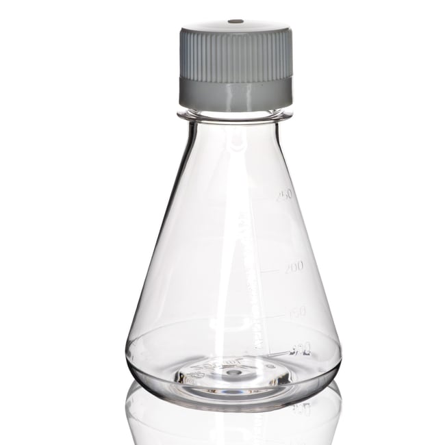 - PETG Erlenmeyer Flask: Sterile PETG flask with non-vented caps, designed for laboratory mixing and storage.