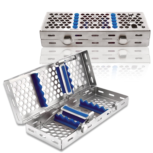 - Double-button locking mechanism keeps instruments secure during sterilization