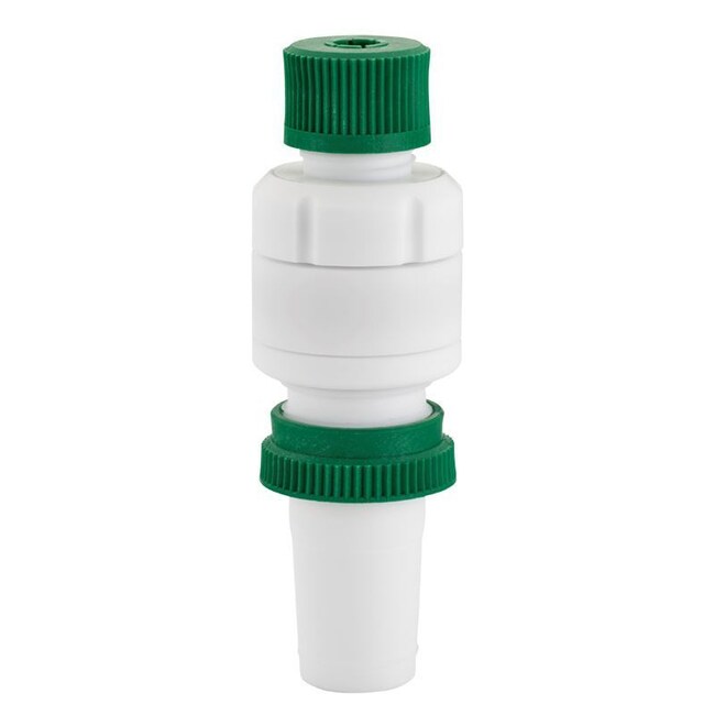 - PTFE body with a glass ball bearing for chemical resistance.