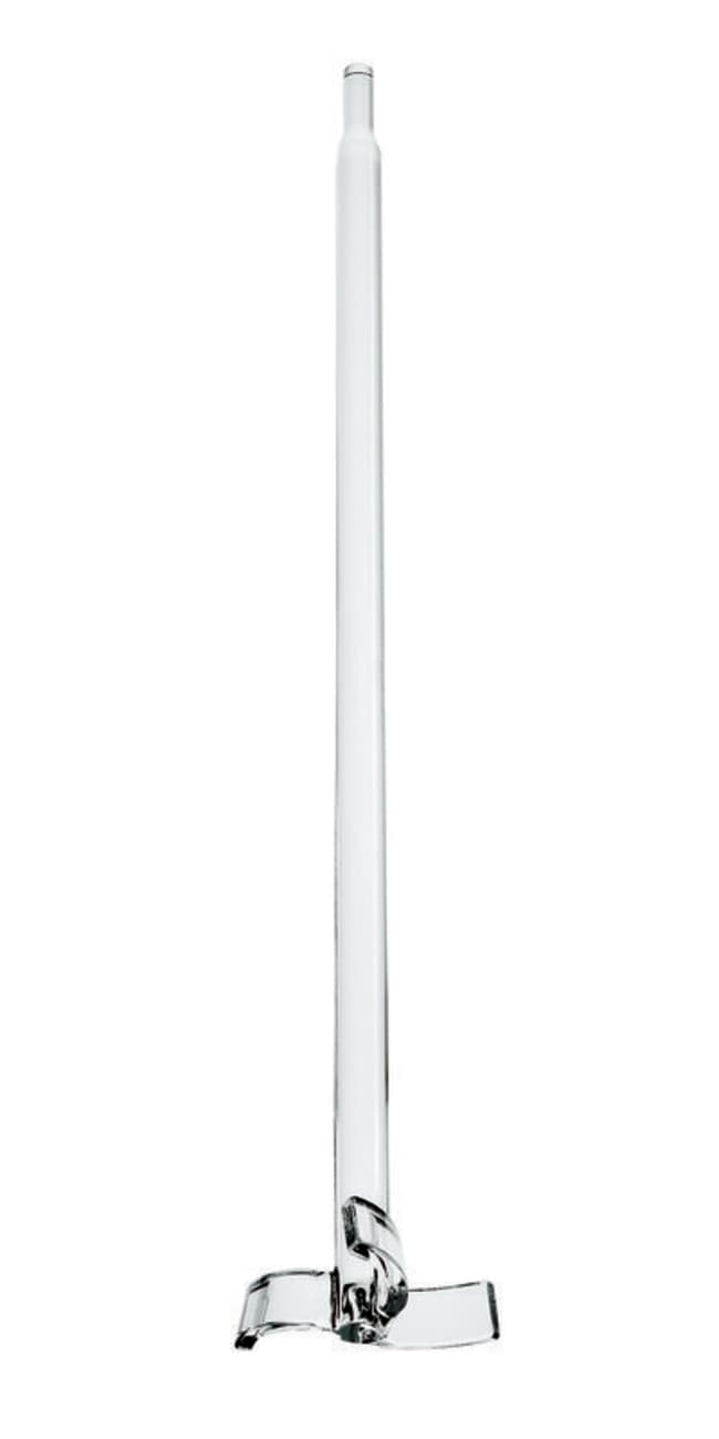 Stirring Shaft, 19mm, Polished, Glass Agitator, Three-Blade, 570mm OAL, for 2000mL Reactors, 105mm OD Agitator. Shaft is precision ground and polished to fit our CG-2086 19mm PTFE bearings. Designed to be used with cylindrical type reactors. The curved glass blades are spaced 120° apart and angled upward.PLEASE NOTE: STIRRER SHAFTS ARE DESIGNED FOR COUNTER-CLOCKWISE ROTATION.ALSO NOTE: 19MM SHAFTS HAVE A REDUCED DIAMETER TOP SECTION THAT IS 1/2"OD, PLEASE KEEP THIS IN MIND WHEN SELECTING THE PROPER SIZE COUPLING.