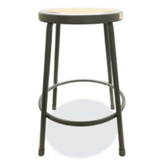 Industrial Metal Shop Stool, Backless, Supports Up To 300 Lb, 24" Seat Height, Brown Seat, Gray Base