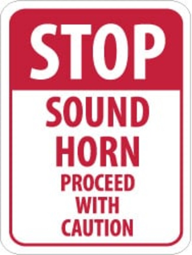 Road Construction Sign: Rectangle, "Stop - Sound Horn - Proceed with Caution"