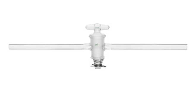 Chemglass Life Sciences Stopcock, Straight Bore, Glass Plug, High Vacuum, 6mm Bore, 20/44 Plug Size, 12mm OD Sidearms