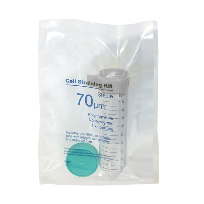 ReadyStrain™ 70µm Cell straining kit w/ strainer, 50mL tube and screw-cap, white, sterile, indiv. wrapped