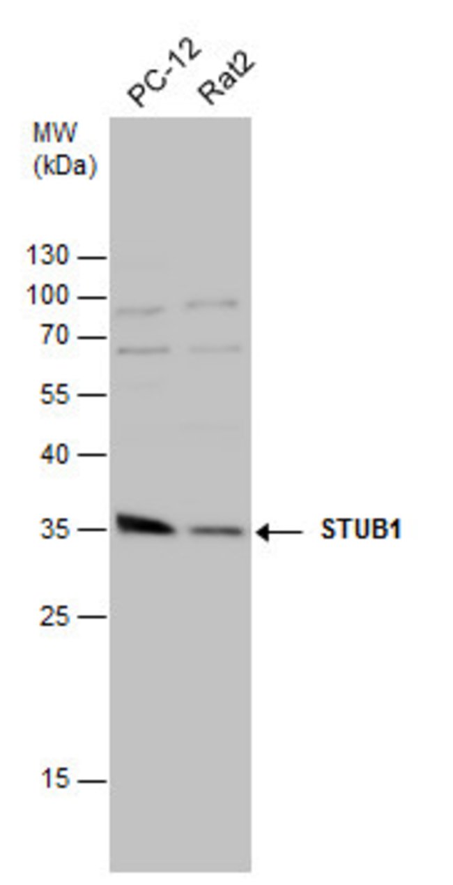 0610033N24Rik; 2210017D18Rik; 2310040B03Rik; Antigen NY-CO-7; AW046544; Carboxy terminus of Hsp70-interacting protein; CHIP; CLL-associated antigen KW-8; E3 ubiquitin-protein ligase CHIP; heat shock protein A binding protein 2 (c-terminal); HSPABP2; LA16c-313D11.6; NY-CO-7; PP1131; RING-type E3 ubiquitin transferase CHIP; SCAR16; SDCCAG7; serologically defined colon cancer antigen 7; STIP1 homology and U box-containing protein 1; STIP1 homology and U-box containing protein 1; STIP1 homology and U-box containing protein 1, E3 ubiquitin protein ligase; Stub1; UBOX1 | |