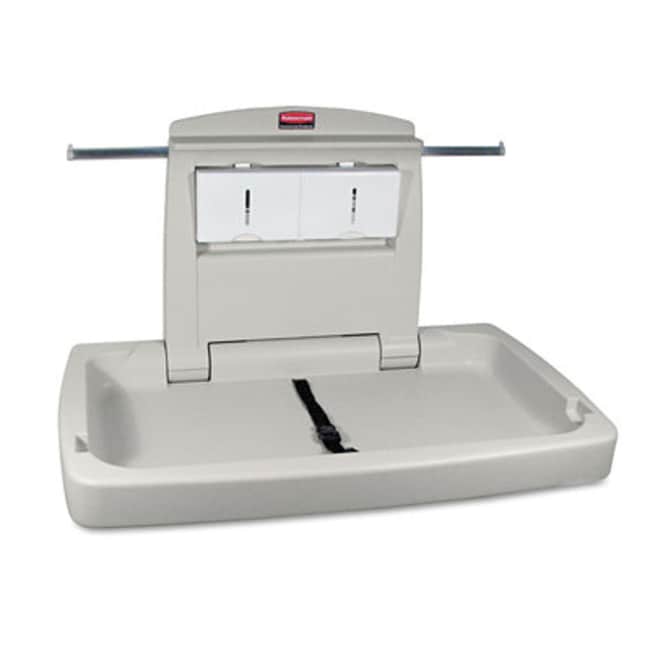 The Rubbermaid Commercial Horizontal Baby Changing Station is designed for commercial environments. Built from high-density polypropylene, this baby changing pad table does not absorb moisture. This baby station meets all global EN, FDA, ADA, and ASTM safety standards. The sturdy station features an accessory shelf to keep items away from baby plus easy reach hooks. The smooth surface makes this changing table easy to clean.