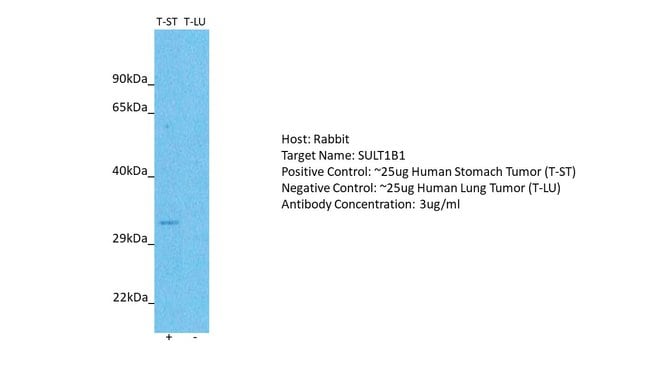 | Synthetic peptide directed towards the N terminal region of human SULT1B1 (aa 1-50). | |