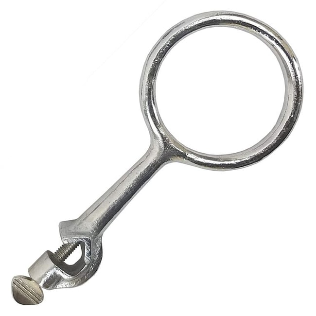 Cast iron with clamp to attach to support stand rod. Cast-iron construction prevents breakage under normal use.