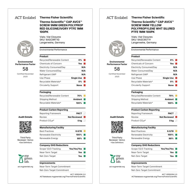 All SureSTART vials, closures, and septa are certified to meet physical parameter specifications as part of our manufacturing process.