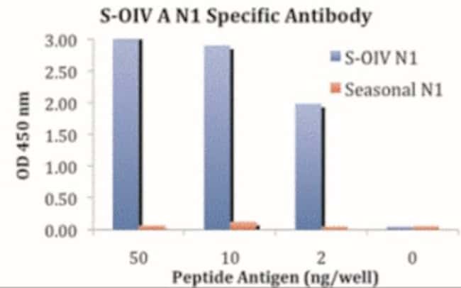| This antibody is specific for the novel swine influenza Neuraminidase and will not recognize the corresponding Neuraminidase sequence from the seasonal H1N1 influenza (A/Georgia/20/2006 (H1N1)). Will not cross-react with peptide corresponding to the seasonal influenza (H1N1) Neuraminidase. | |