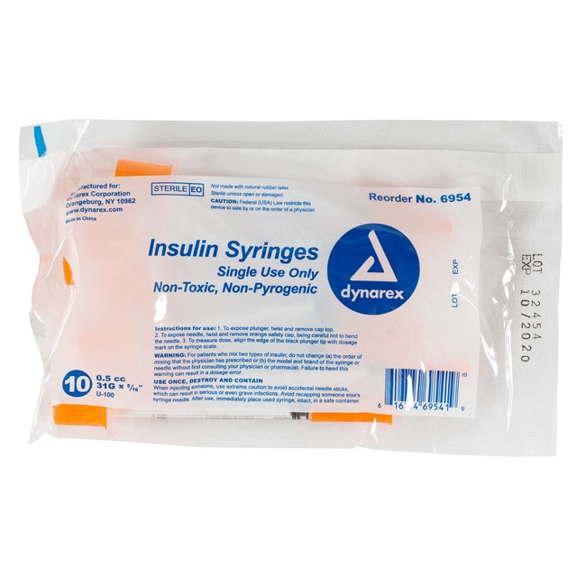 Med Vet International Dynarex insulin Syringe, 31g, 5/16" Needle, Bagged in 10S, 0.5Cc, 500/Case