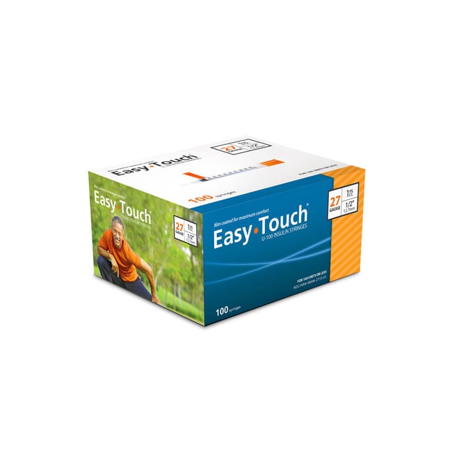 Med Vet International EasyTouch U-100 Insulin Syringes, 1ml, 30G x 0.5in, 100/Box