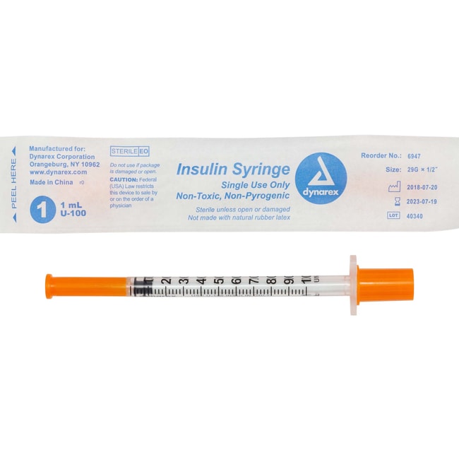 Dynarex Insulin Syringes are designed to deliver insulin effectively and precisely. These sterile, disposable Syringes are constructed with securely attached stainless-steel needles to help prevent needle pop-off for increased safety. The Insulin Syringes feature lubricated thin-walled, double-beveled needles for smoother insertion and improved patient comfort. Dynarex Insulin Syringes have transparent barrels with large-font gradations to allow for clear visualization. Dynarex Insulin Syringes are high-quality hypodermic syringes designed to effectively deliver insulin. Each disposable Syringe features a sterile, stainless-steel needle with a lubricated double-beveled tip for improved patient comfort. The transparent barrel is clearly marked with large-font numbering for accurate dosing and measurement.