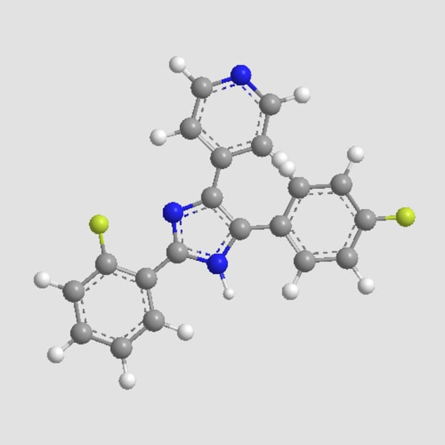 TA 02 (CAS 1784751-19-4) is a small molecule inhibitor targeting the p38 MAPK signaling pathway It demonstrates inhibitory activity against p38 MAPK with an IC50 of approximately 20 nM and operates through a mechanism comparable to well-characterized inhibitors such as SB 203580 and SB 202190 In addition to its effects on p38 MAPK TA 02 has been shown to inhibit TGFBR-2 Recent studies suggest that TA 02 influences pharmacological processes associated with cardiac function This compound is suitable for experimental studies investigating p38 MAPK-mediated signaling TGF- receptor pathways and cardiovascular disease mechanisms