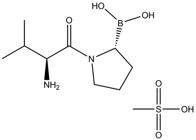 Talabostat mesylate (CAS 150080-09-4) also known as PT-100 or Val-boroPro is an orally active inhibitor targeting dipeptidyl peptidase enzymes particularly dipeptidyl peptidase IV (DPP4) and fibroblast activation protein (FAP) It exhibits potent inhibition against these post-prolyl proteases with an IC50 of approximately 1 nM By blocking the enzymatic cleavage of N-terminal Xaa-Pro or Xaa-Ala sequences talabostat mesylate stimulates cytokine and chemokine production enhancing hematopoiesis through induction of colony-stimulating factors such as granulocyte colony-stimulating factor (G-CSF) Due to these activities talabostat serves as a valuable pharmacological tool in studying tumor biology immune modulation and enzyme-mediated signaling pathways