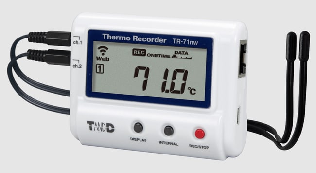 CAS DATALOGGERS TandD TR71NW Ethernet Temperature Data Logger with 2 Probes and 2 Thermal Buffers