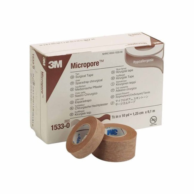 The non-sterile 3M Micropore medical tape keeps dressings and medical devices securely in place It provides reliable adhesion, even on slightly wet skin The micro-porous paper material is breathable to promote good skin health The tape adapts to body contours for flexibility It's hypoallergenic and latex-free to accommodate different skin types It's available in single-use rolls for convenience This tape is known in hospitals as 3M Micropore surgical tape Tan paper medical tape is 1/2 inch x 10 yards
